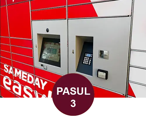 - Mergi la easybox, introdu codul PIN sau scanează codul QR de pe mail și deblochează sertarul comenzii tale.